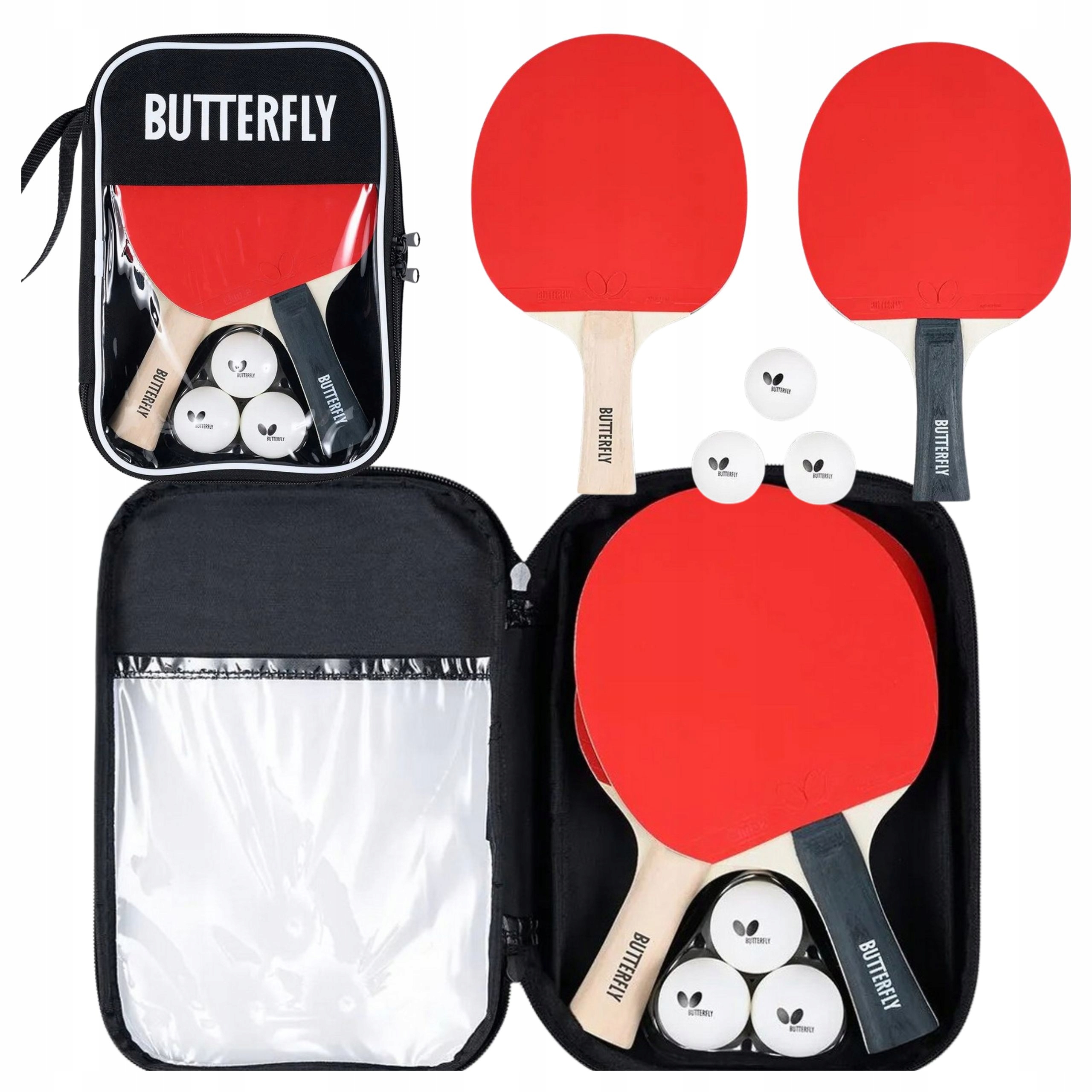 2 PALETKI BUTTERFLY DO PING PONGA + 3 PIŁECZKI DO PING PONGA + POKROWIEC