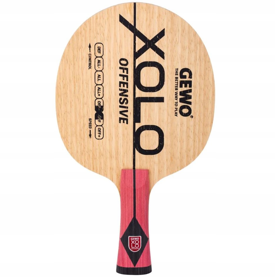 GEWO XOLO Offensive to bardzo rozsądna propozycja dla osób, które chcą zacząć treningi klubowe z własnym sprzętem. Sprawdzi się jako baza pod pierwszą rakietkę z wybranymi okładzinami. Umożliwia naukę podstaw rotacji i dynamiki bez nadmiernego przyspieszania piłki – co jest częstym problemem przy zbyt szybkich deskach. Ergonomiczny uchwyt zapewnia komfort, a jakość wykonania gwarantuje długowieczność.